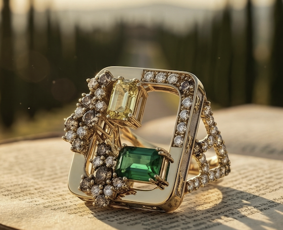 In Tuscany, there is a moment just before dusk when the light turns the color of warm honey - when the vineyards glow and the cypress trees cast long, still shadows. The Clavis Ring was born in that suspended hour.