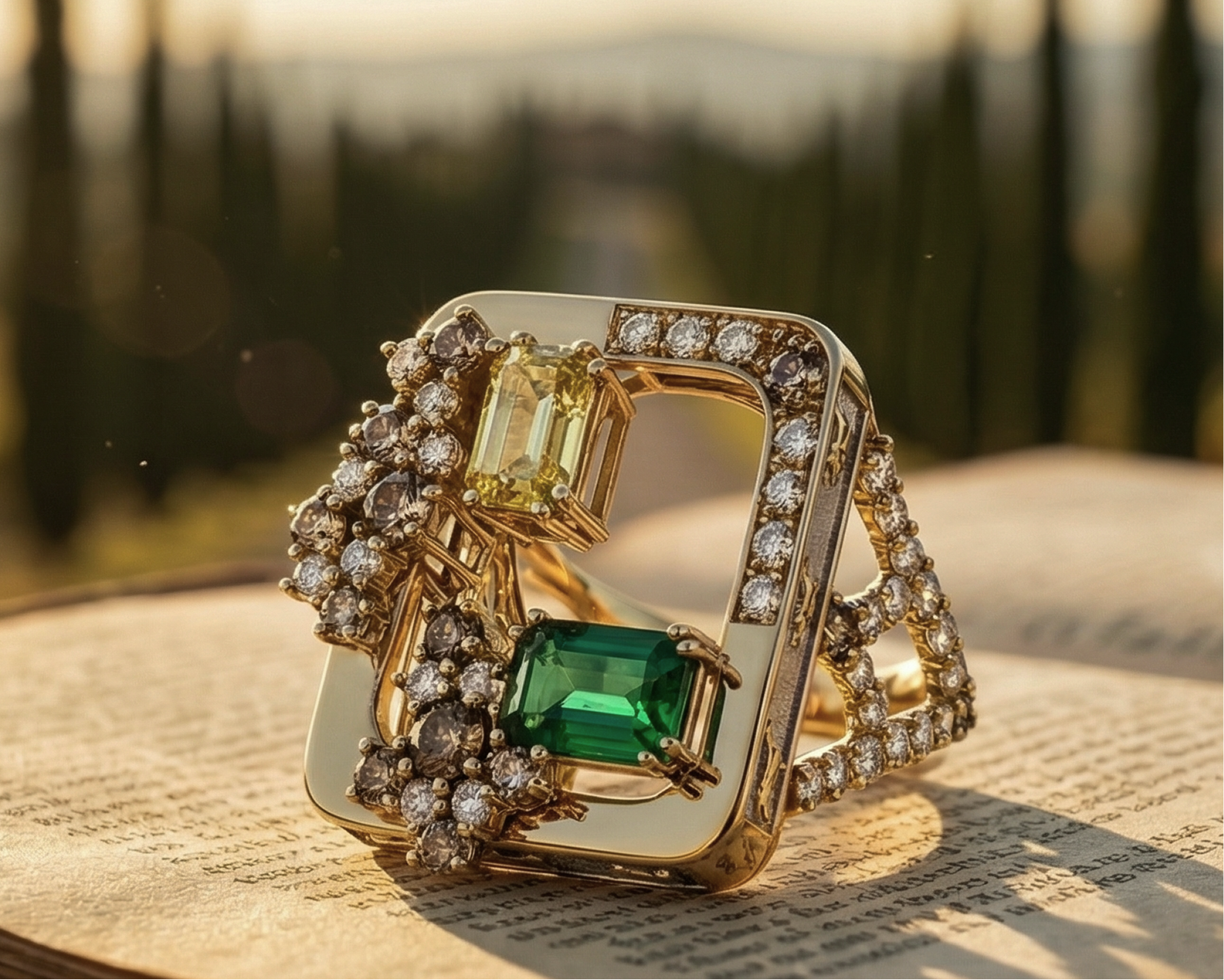 The CLAVIS ring is conceived as a statement of style and identity. A piece rooted in the intellectual elegance of 1920s Art Déco, reinterpreting its codes through an equestrian aesthetic and a contemporary, cultured vision — deliberately non-symmetrical. Like a key — Clavis in Latin — this ring unlocks a new aesthetic language, where classical geometry is intentionally disrupted to create movement, character, and singularity. The warmth of 18-karat yellow gold dialogues with the luminosity of 18-karat white gold, a distinctive signature of SAVÍN Milano . Designed by Mauro Buonadonna, CLAVIS stands as a symbol of Italian heritage and contemporary equestrian spirit.